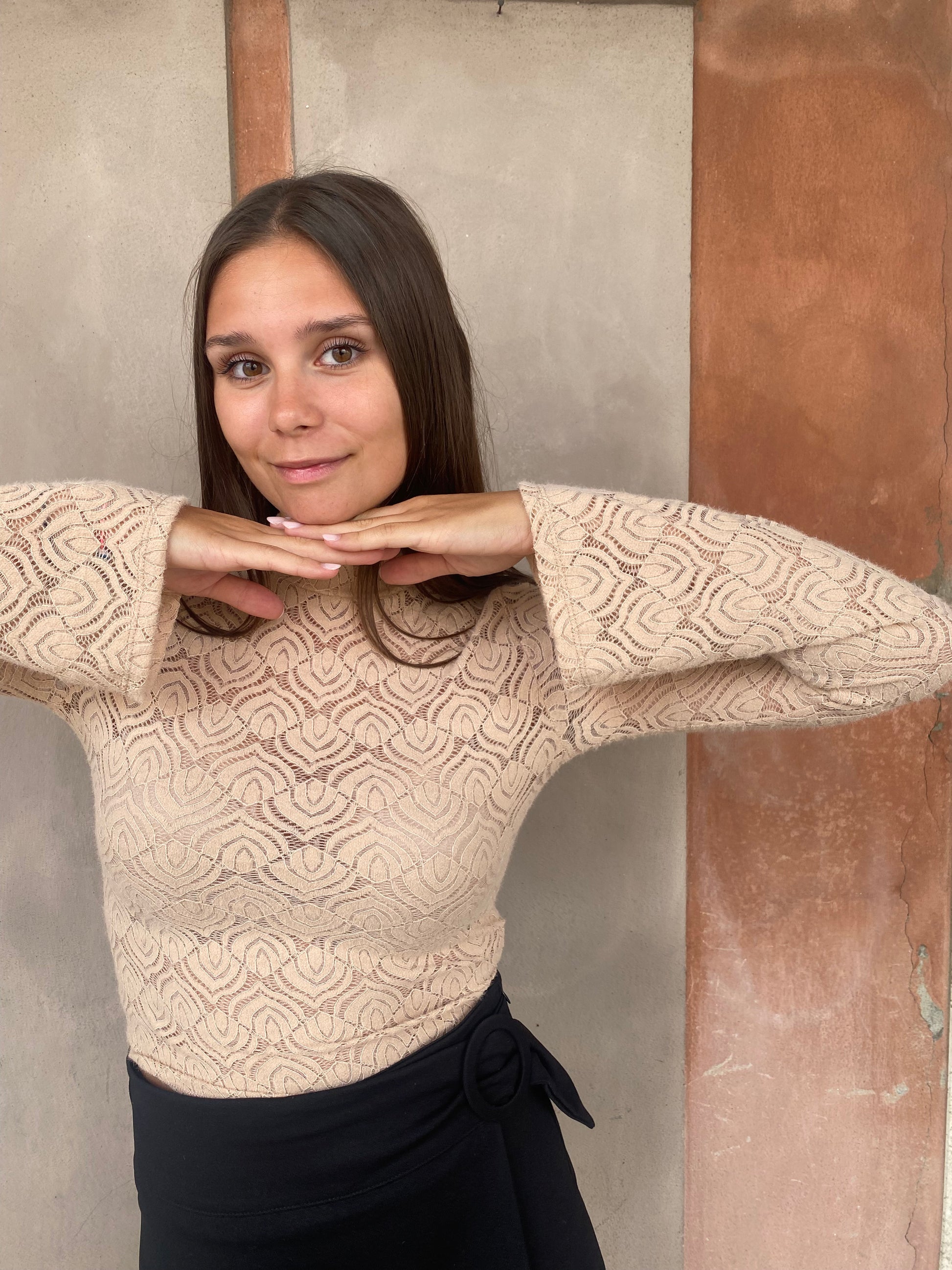 Elegante e raffinato, il nostro Top Macramè è il capo perfetto per un look invernale dal tocco esclusivo. Realizzato in morbido tessuto con motivo macramè, aderisce delicatamente al corpo sottolineando la figura. Il collo alto e la manica a campana aggiungono un tocco di stile unico. Disponibile nel delicato colore cipria.