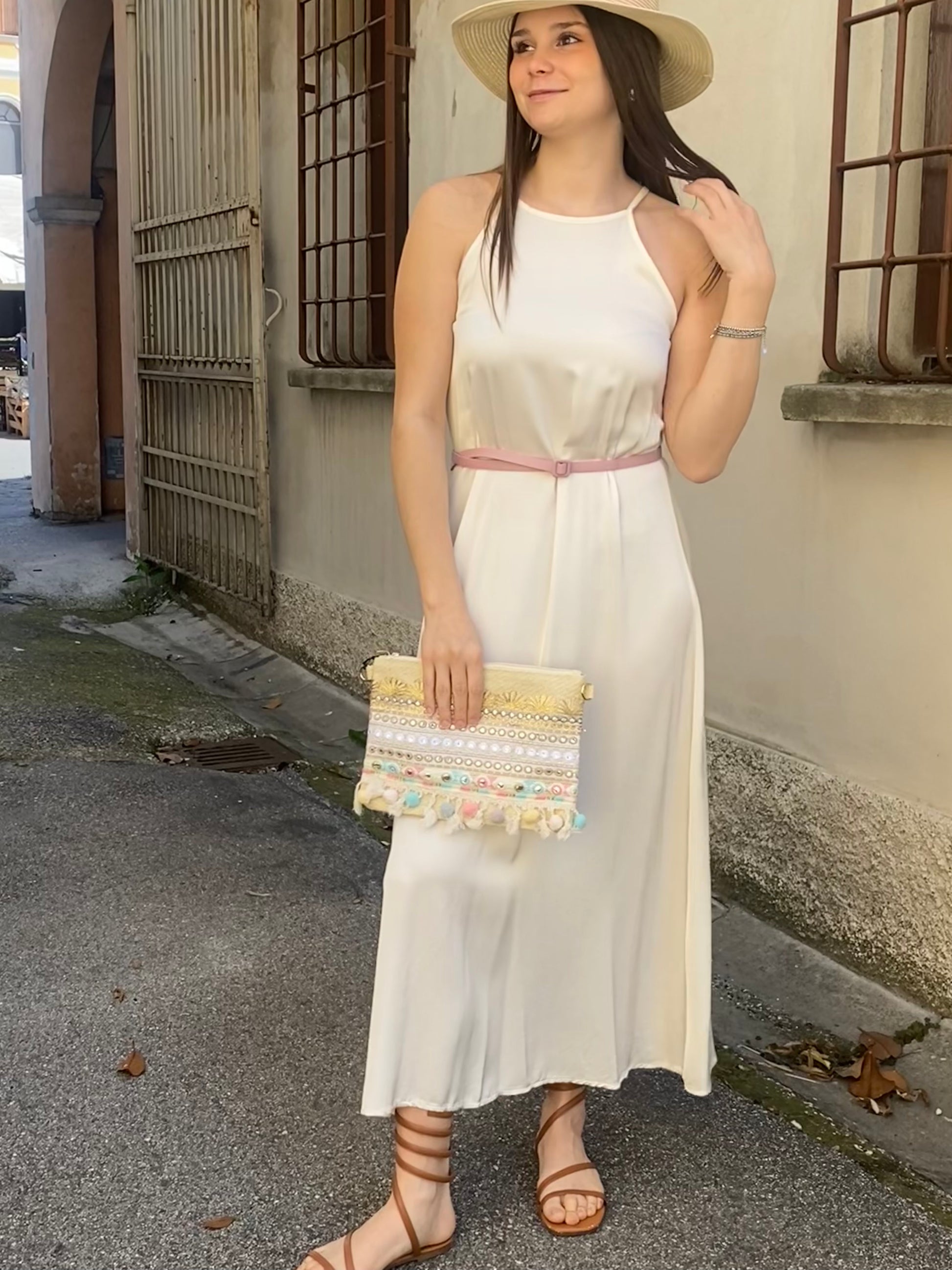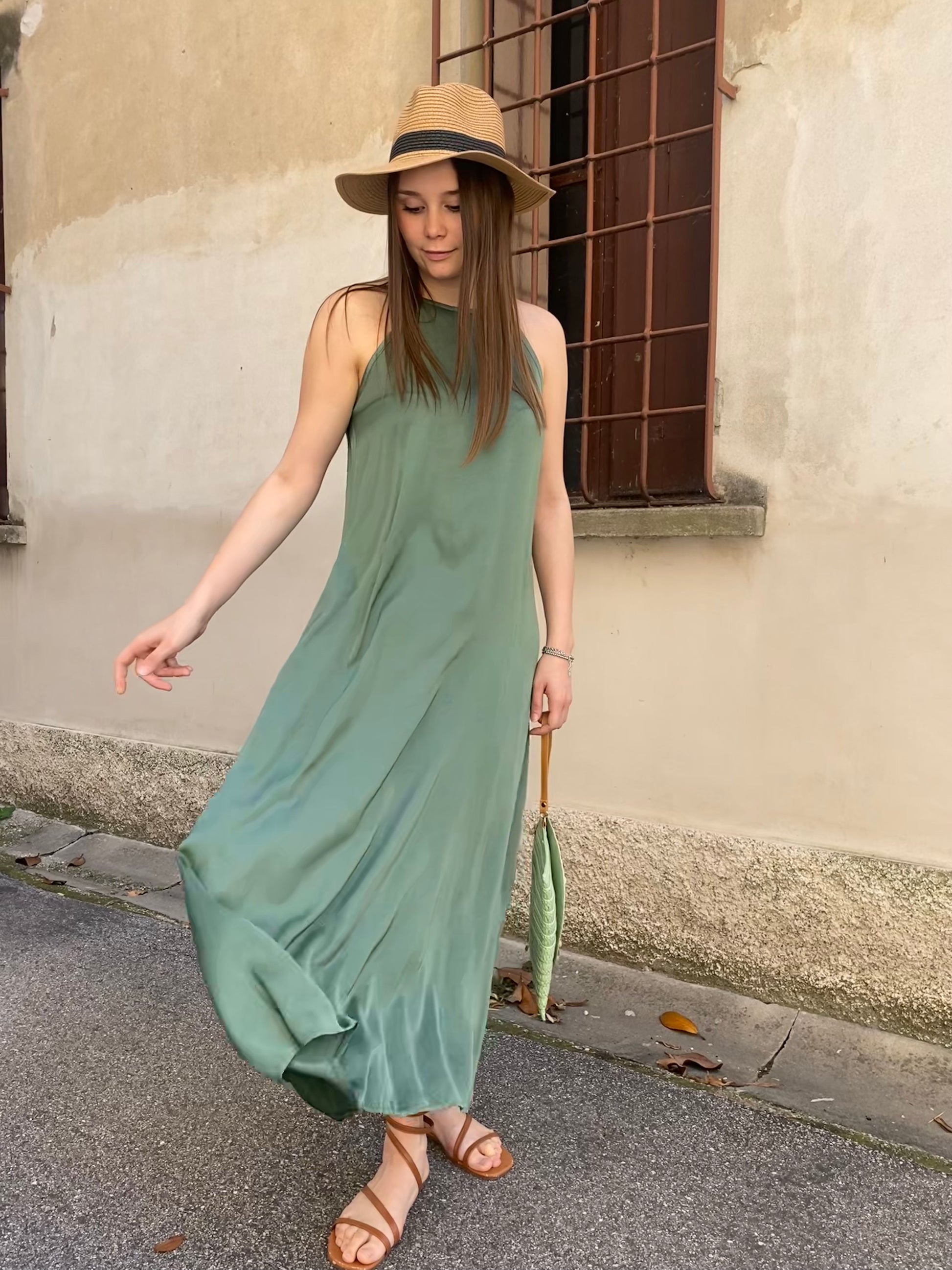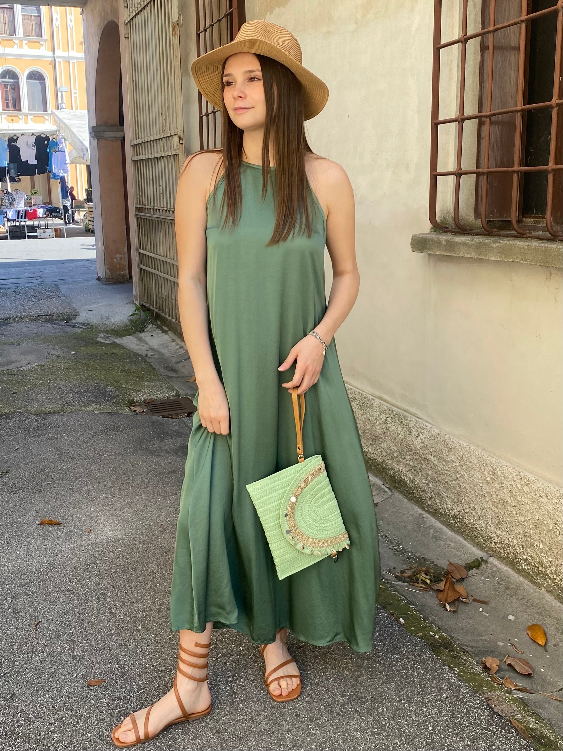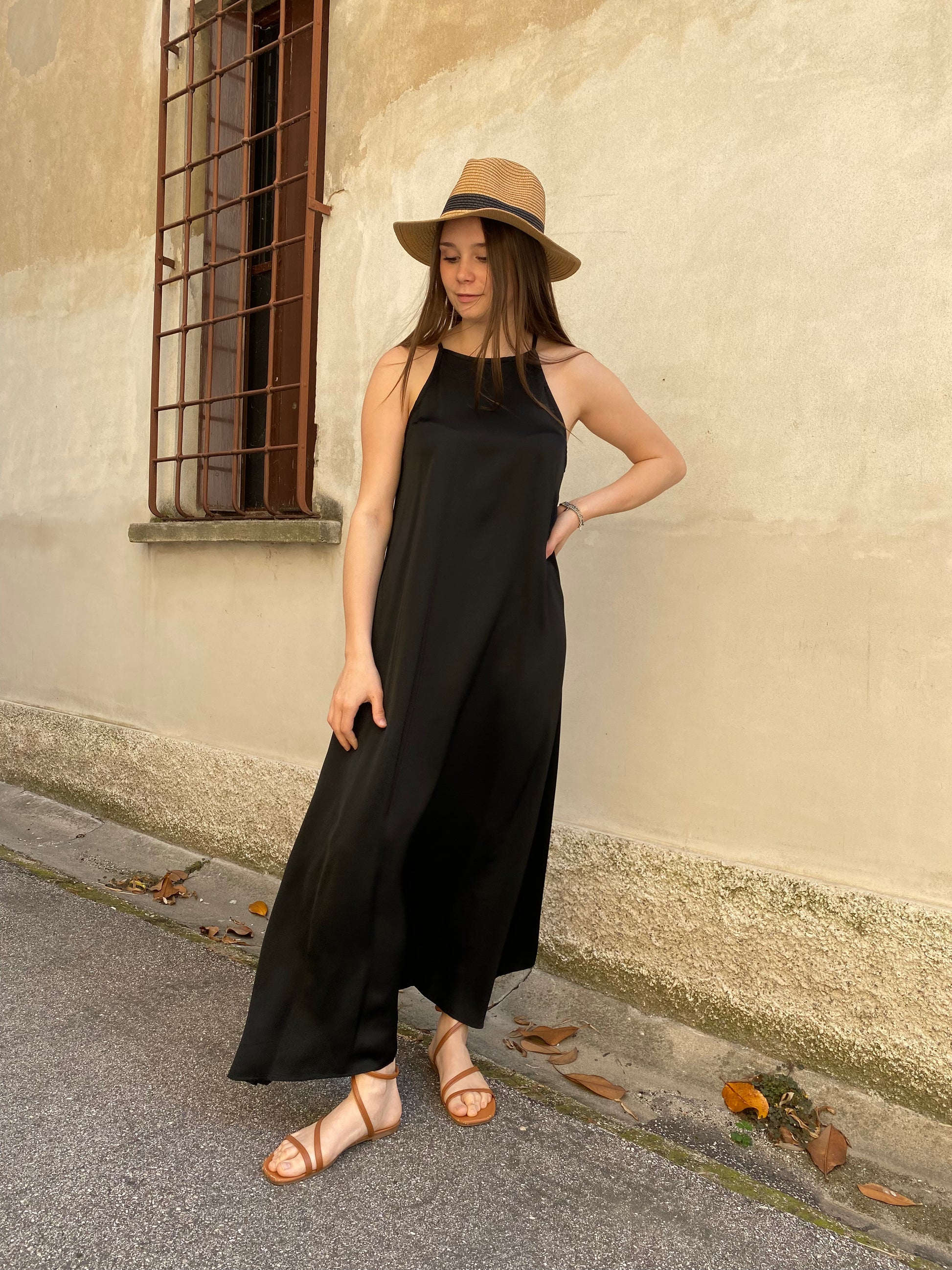 Realizzato in morbido raso, questo abito lungo con spalline sottili è perfetto per ogni occasione, grazie alla sua linea morbida e versatile. Sii sempre pronta a brillare con stile!