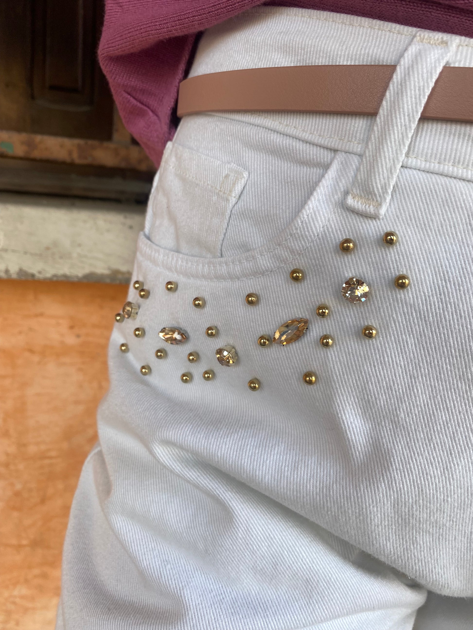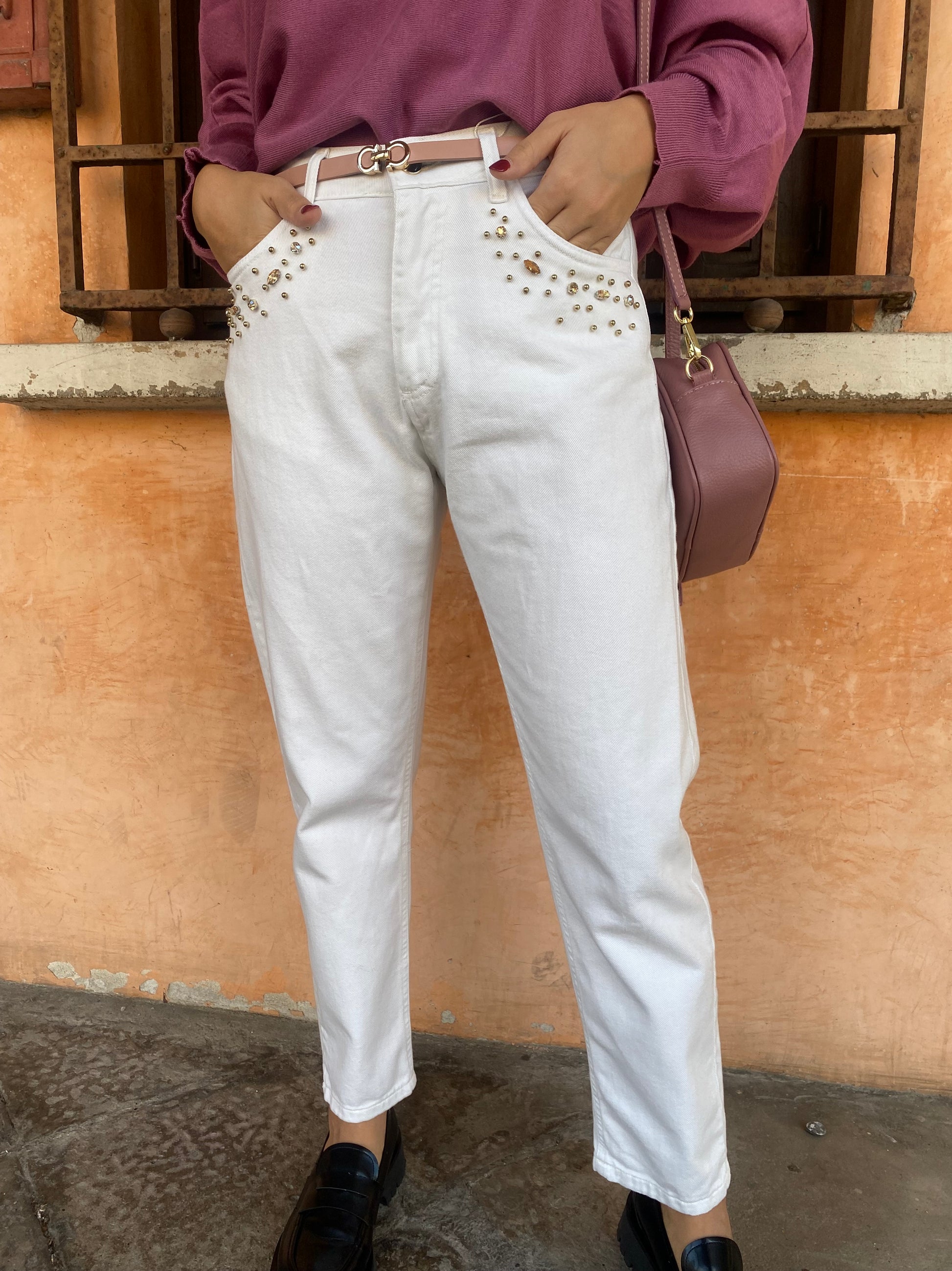 Jeans Carrot ricamo Pietre