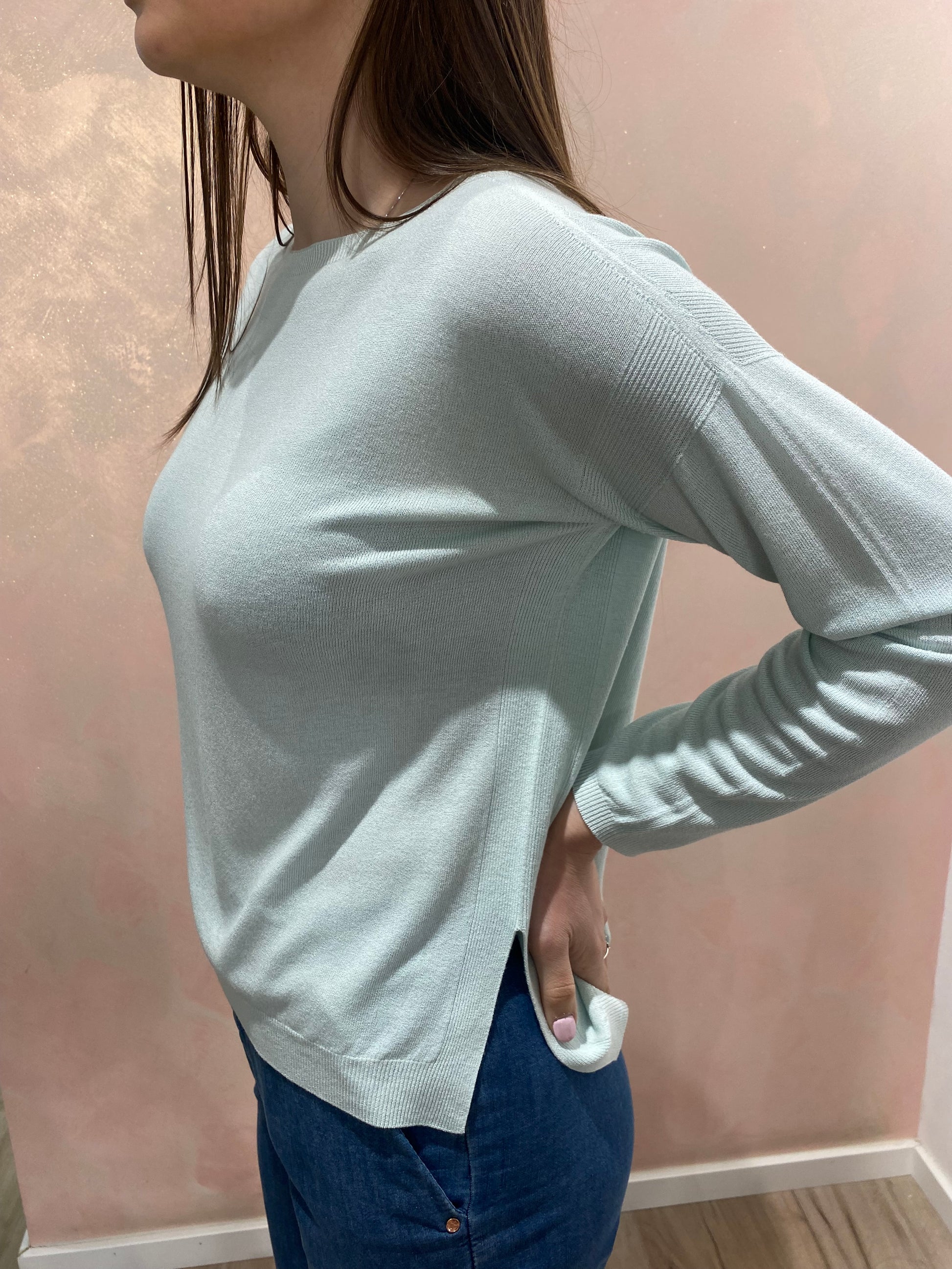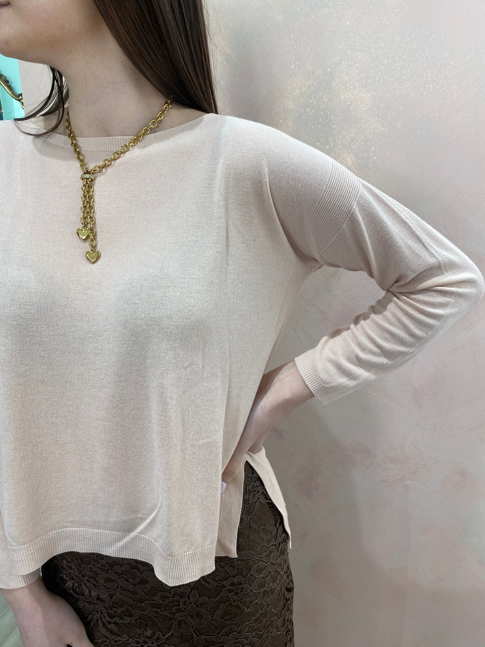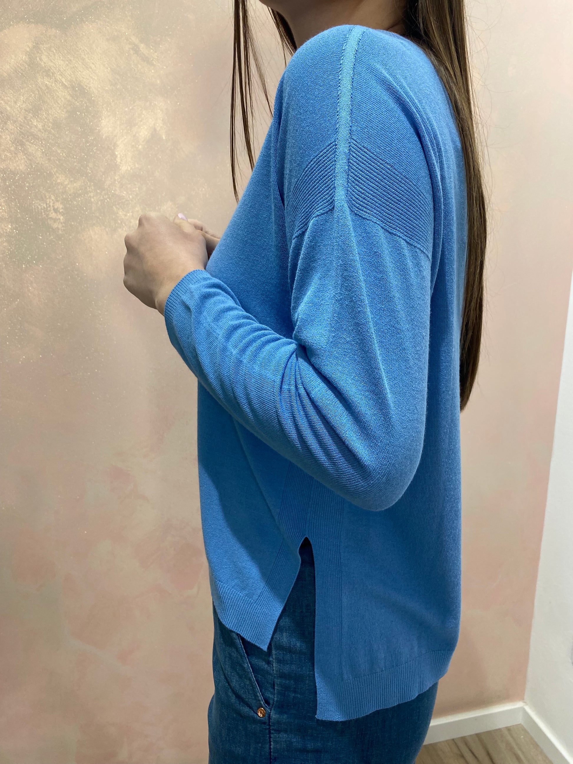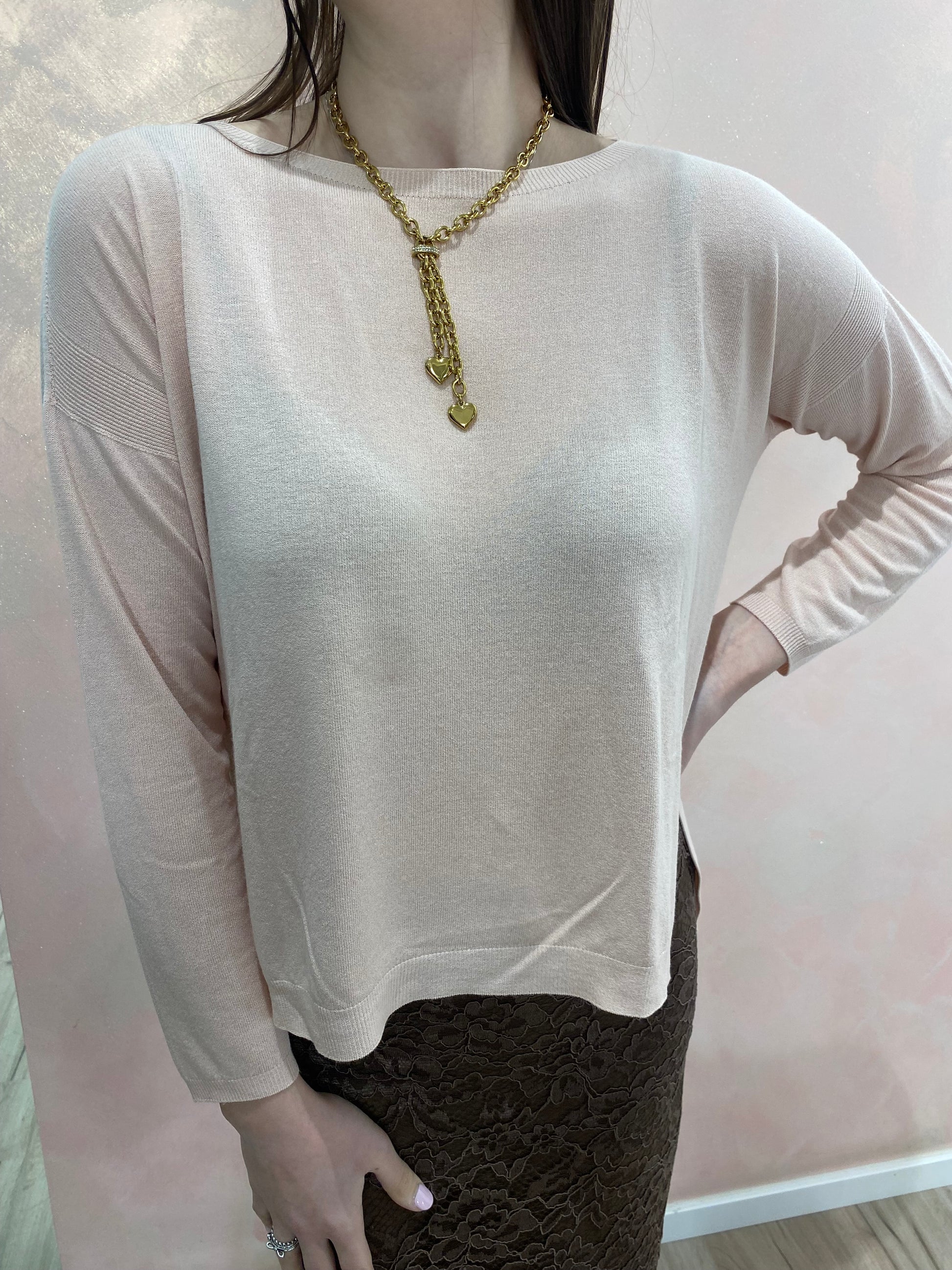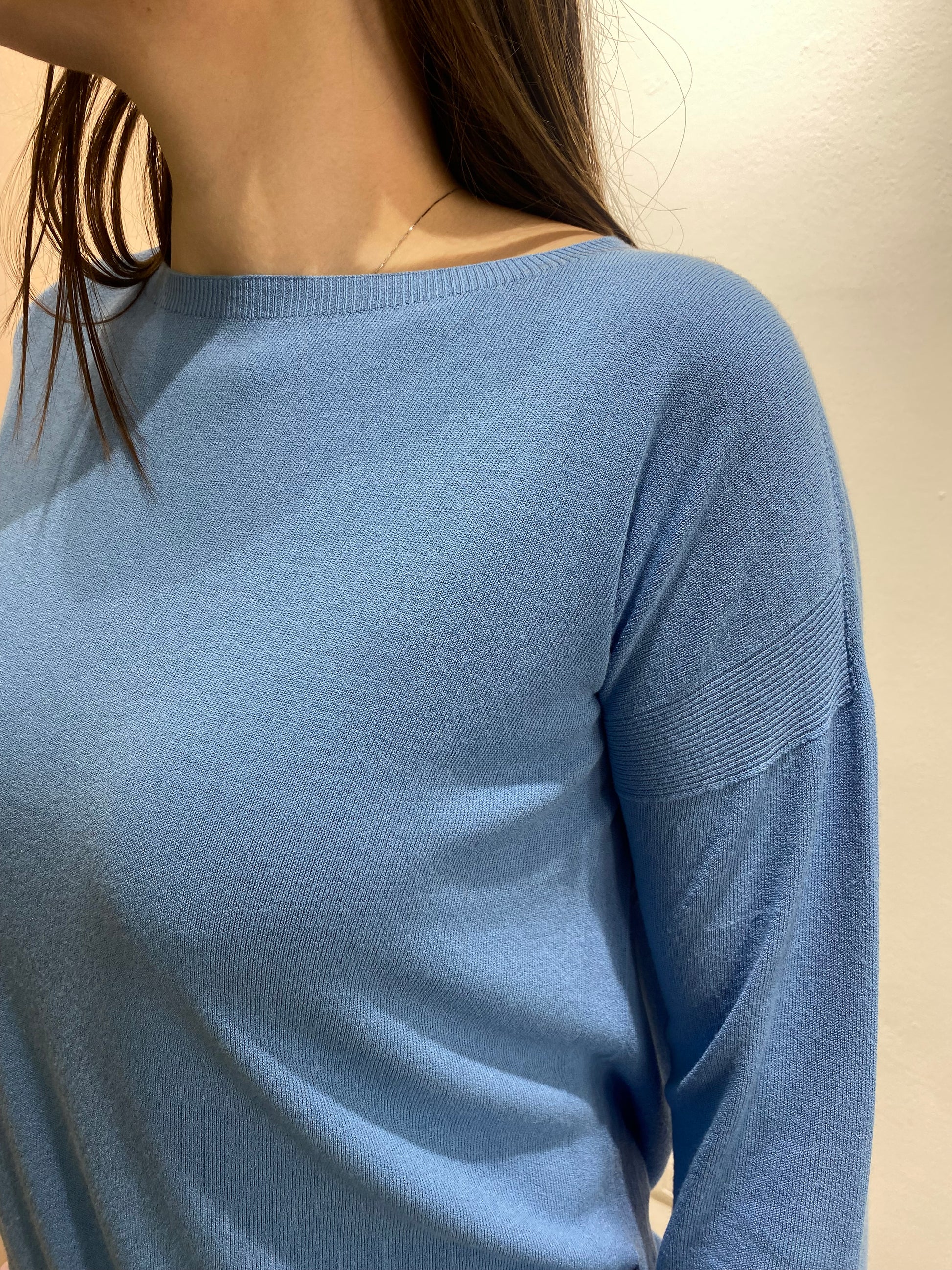 La Maglia Barchetta è realizzata in maglieria di viscosa, garantendo una vestibilità regolare e comfort. Il suo scollo a barchetta e gli spacchi laterali offrono libertà di movimento. Disponibile in taglia unica, adatta per le misure dalla 38 alla 44, rappresenta una scelta versatile e pratica per ogni guardaroba.
