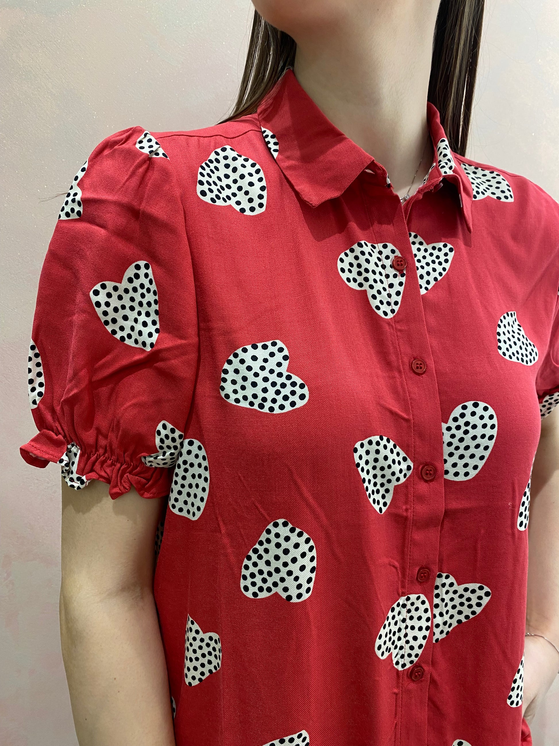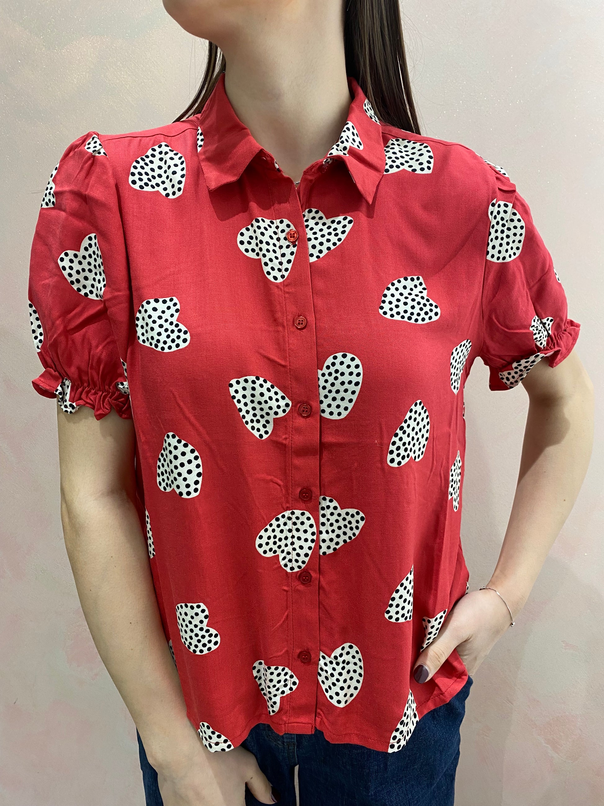 Blusa manica corta a palloncino in viscosa, fantasia, cuori